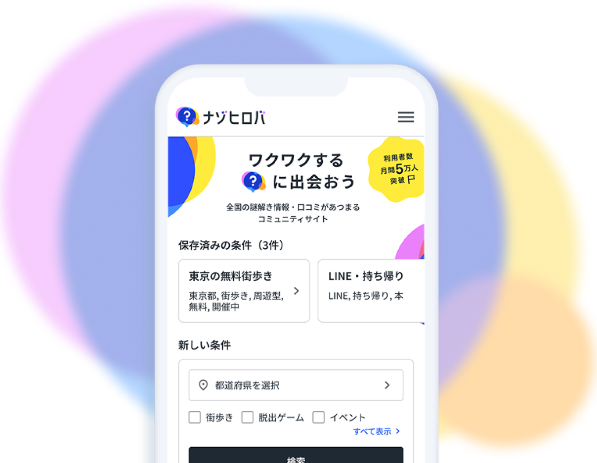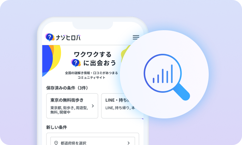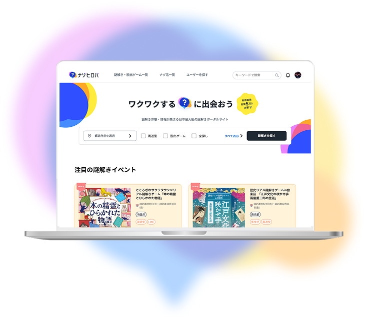 ナゾヒロバは日本最大級の謎解き・脱出ゲームに特化したポータルサイトとして、多くのイベントデータやユーザー行動の知見を蓄積しています。