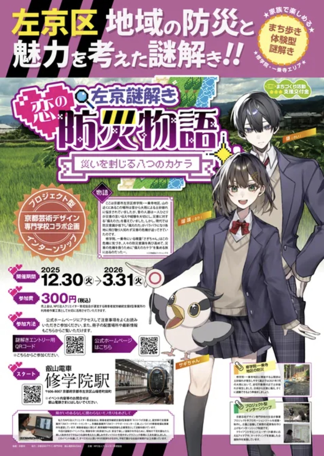 修学院、一乗寺にいる精霊「さぎちゃん」はこの危機に気づき、人々の防…