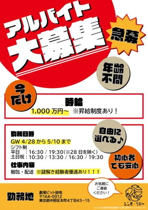 ※アルバイトの募集内容については謎解き公演に関するフィクションです。