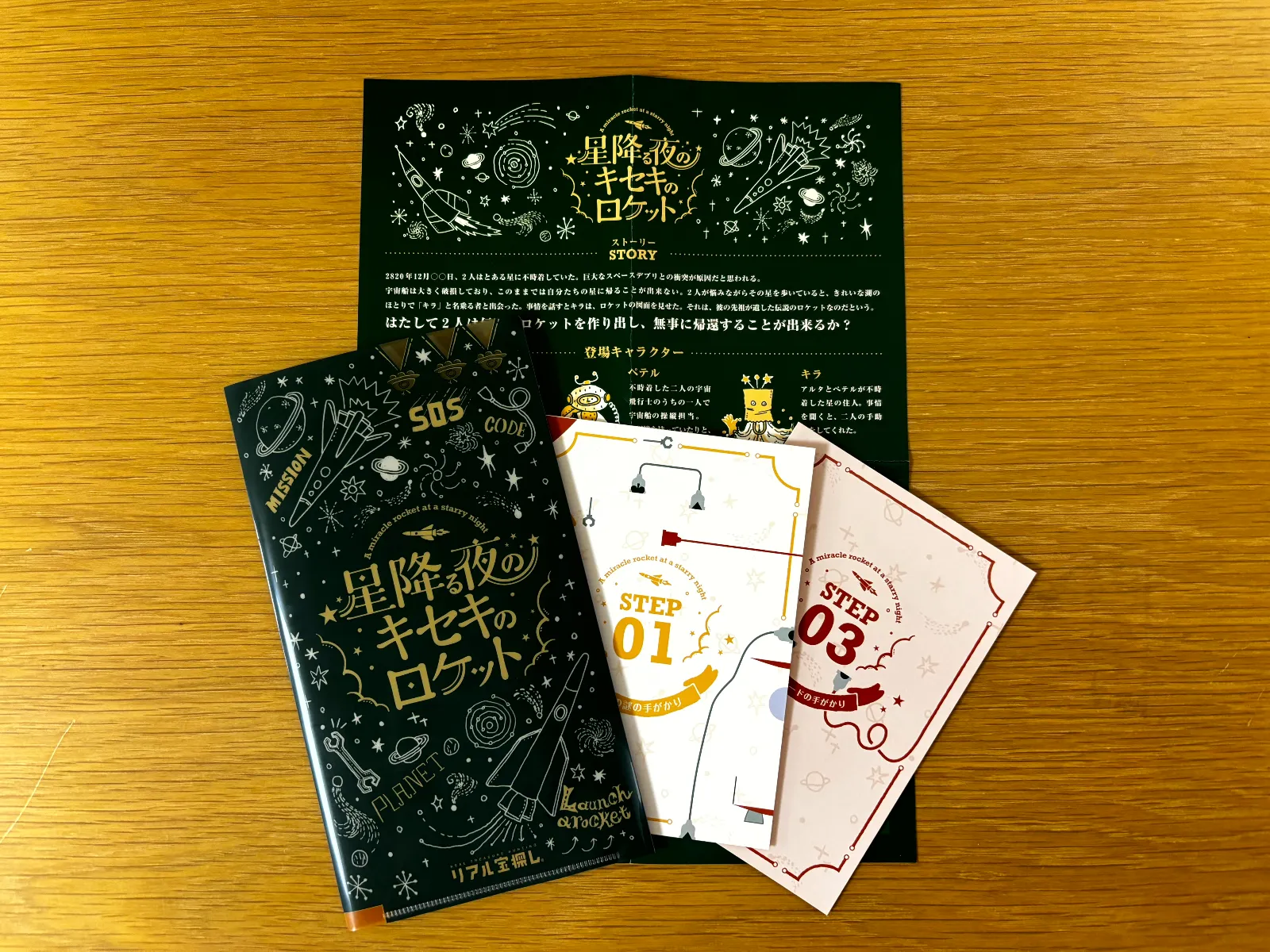 2820年12月○○日、2人はとある星に不時着していた。 巨大なスペースデブリとの衝突が原因だと思われる。 宇宙船は大きく破損しており、このままでは自分たちの星に帰ることが出来ない。 2人が悩みながらその星を歩いていると、きれいな湖の ほとりで「キラ」と名乗る者と出会った。 事情を話すとキラは、ロケットの図面を見せた。 それは、彼の先祖が遺した伝説のロケットなのだという。 はたして2人は伝説のロケットを作り出し、無事に帰還することが出来るか? ボリュームはそこまでないですが、ちょっとしたストーリがあり、それにちなんだ小謎と工作もあり楽しめます。 謎は軽めだと思ったのですが、最後の指示がどこを指すのかが分からなくて悩みました。分かってみたら簡単だった!(´Д`) こういうちょっといい話好きです。絵もかわいらしくて、キラが斬新でした。 ちょうど、今の時期にぴったりです。 クリアファイルがかわいらしいのでチケットホルダーとして使いたいと思います。