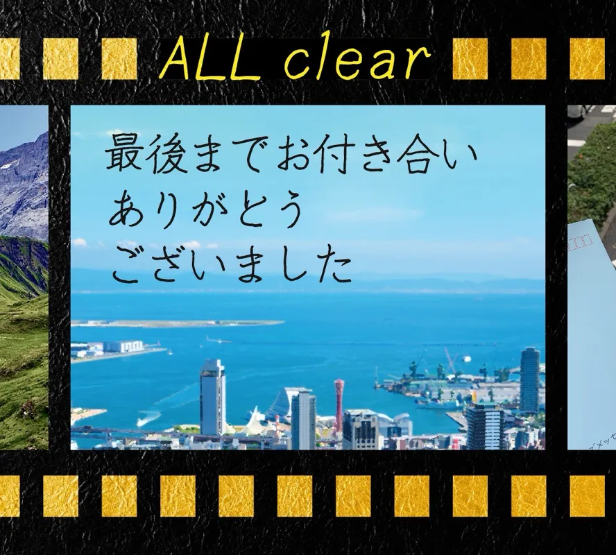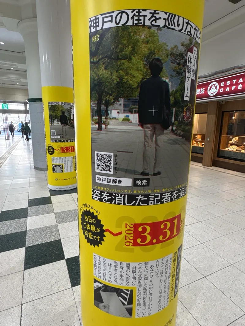 滑り込みでプレイしてました。 ゆっくり解いて神戸の街を堪能出来ました。 初めは1通の封筒でびっくりしましたが、追加アイテムがどんどん増えてちゃんと謎解きに繋がっていく演出は良かったです。失踪した記者の足取りを追い事件の真相を突き止めるのが今回の目的でしたが、謎の解き方もリアリティあって正にARGな謎解きでしたね。 ちゃんと演技する所もあったので小芝居してなりきりましたよ。逆に空気読まずやり過ぎてお店の人がちょっと引いてたので…失敗したなと思いました泣。 難易度は全体を通して易しく観光がてらの捜索(謎解き)に最適でした。実際のプレイ時間は4時間程度かと思いますが寄り道し過ぎて6時間でした笑。神戸は中々行けないし観光しないと損ですよね。(もうグルメに景色に博物館に見どころ満載過ぎて半分観光でしたね) 謎スポットは大きく3ヶ所で、どのスポットも見どころ満載の場所だったと思います。当日も数名参加されている方を見かけたので人気あるんですね。プレイして人気の理由も納得でした。 また続編期待してます!楽しかったです。