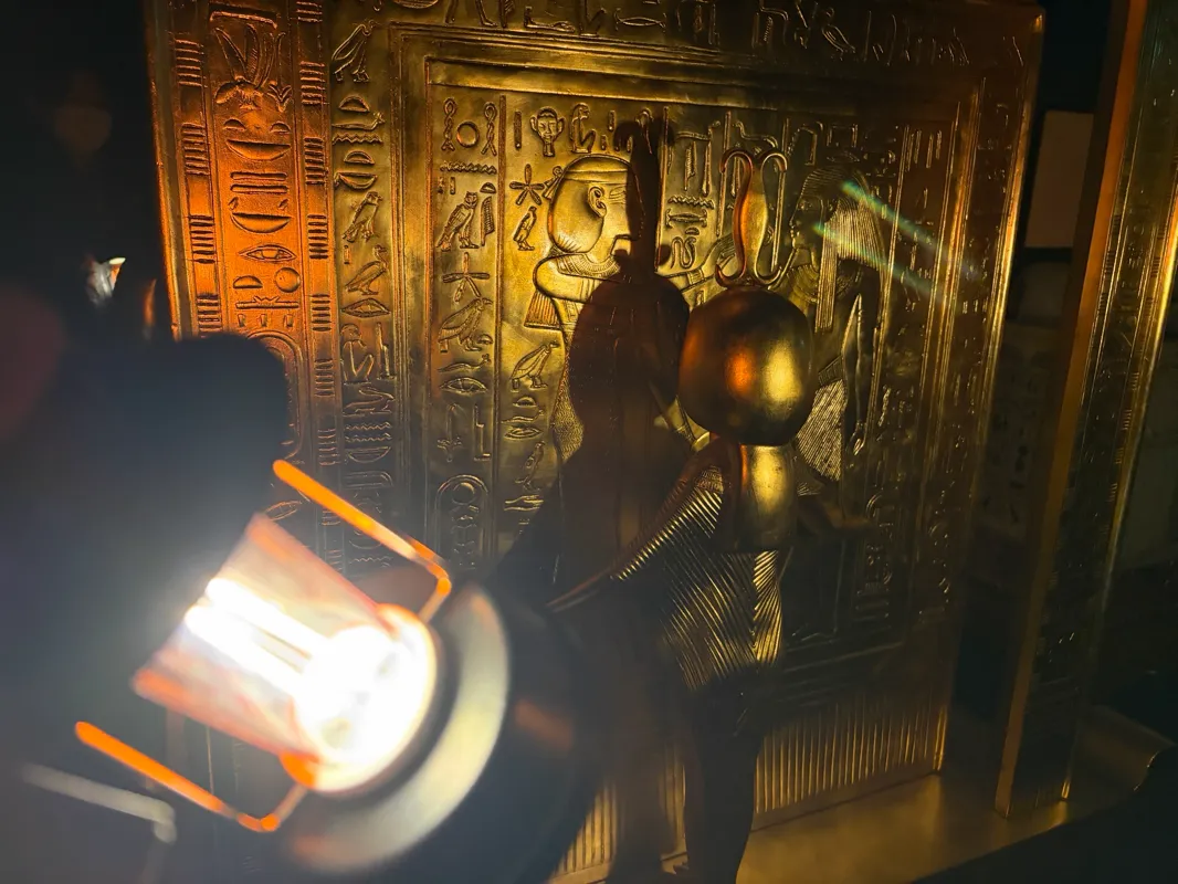 ツタンカーメン展のナイトミュージアム謎解きに参加してきました!通常営業終了後の18時以降に事前予約した限られた人だけが参加できる特別イベントで、すぐに完売する大人気企画です。 参加者はランタンを手に暗がりの館内を探索し、展示のあちこちに散りばめられた「ツタンカーメンにまつわる7つの謎」に挑戦します。 正直なところ、謎解きというよりクイズ要素の方が強い内容でした。 多少の謎解き要素はありますが、本格的な謎解きを期待すると少し拍子抜けするかもしれません。 館内を周遊しながら解く形式で、時間制限はないものの、閉館時間を考えると、早めの回を予約した方がじっくり回れると思います。 ちなみに通常営業内でも見て回れるのでお昼にじっくり展示を見るのがおすすめです。 とにかくこのイベントの魅力としては、ランタンを手に持ち、自分で光を当てながら夜の展示を巡る体験がめっちゃ良かったです。 暗闇の中、ランタンの光で浮かび上がる壁画やヒエログリフ、黄金のレリーフは昼間とは全く違う神秘的な表情を見せてくれて、まるで本物の墓を探検しているような没入感がありました! 参加特典としてオリジナルエコバッグももらえて、記念になりました。 この日は近くのアソビルにある「ホライゾン オブ クフ」というVR体験も合わせて楽しみ、古代エジプトを満喫できた1日でした。 謎解きとしては物足りなさがあるものの、夜のエジプト展をランタンで照らしながら探索できる特別な体験は他ではなかなか味わえないと思います。雰囲気重視で楽しみたい方にはおすすめです!